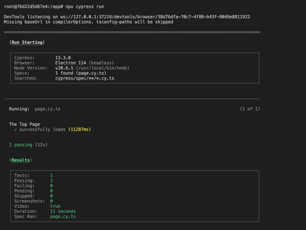 baseUrl: "http://【テスト対象コンテナのホスト名】:3000",